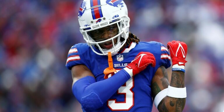 Damar Hamlin, pictured during a November 13, 2022 NFL game, is the subject of multiple conspiracy narratives online AFP Conspiracy theorists who blamed NFL player Damar Hamlin's cardiac arrest...