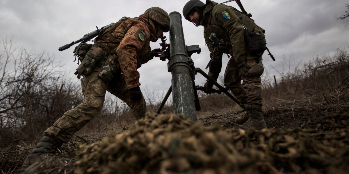 Ukrainian servicemen fire a mortar shell towards Russian troops at the frontline position near the Vuhledar town, amid Russia's attack on Ukraine, in Donetsk region, Ukraine February 11, 2023....